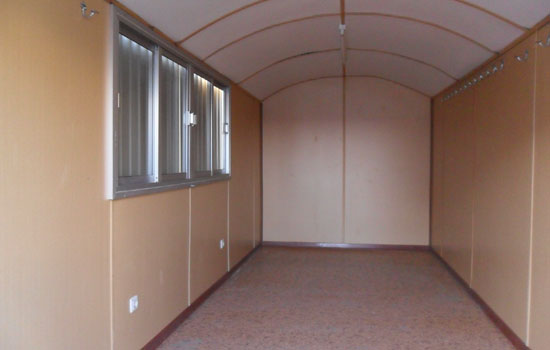 - Módulo aislado con cerramiento de chapa nervada, material aislante e interior en madera.